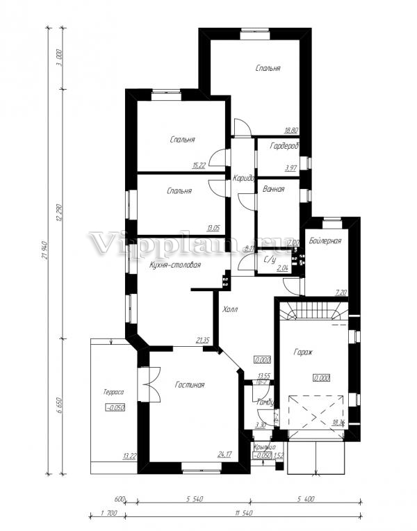 | Размеры дома: | 21.94м×11.54м |
