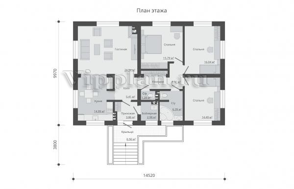 | Размеры дома: | 14.52м×9.97м |